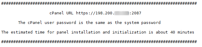 First, we log in to the system via SSH. On the first login, a cPanel link will be displayed.