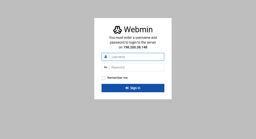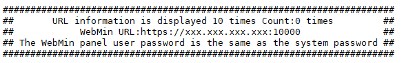 First, we log in to the system via SSH. On the first login, a Webmin link will be displayed.