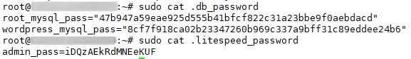 Execute sudo cat .litespeed_password